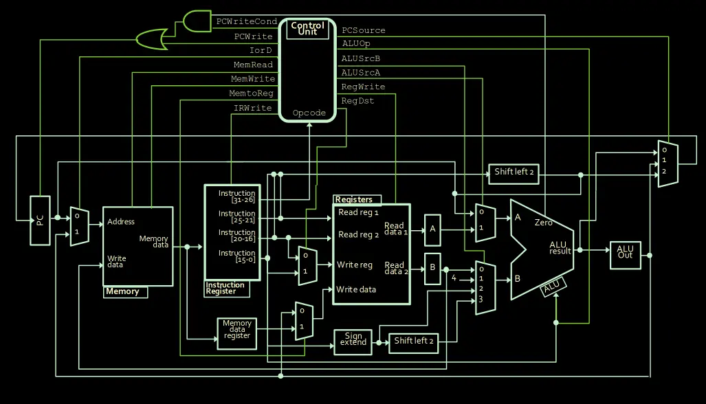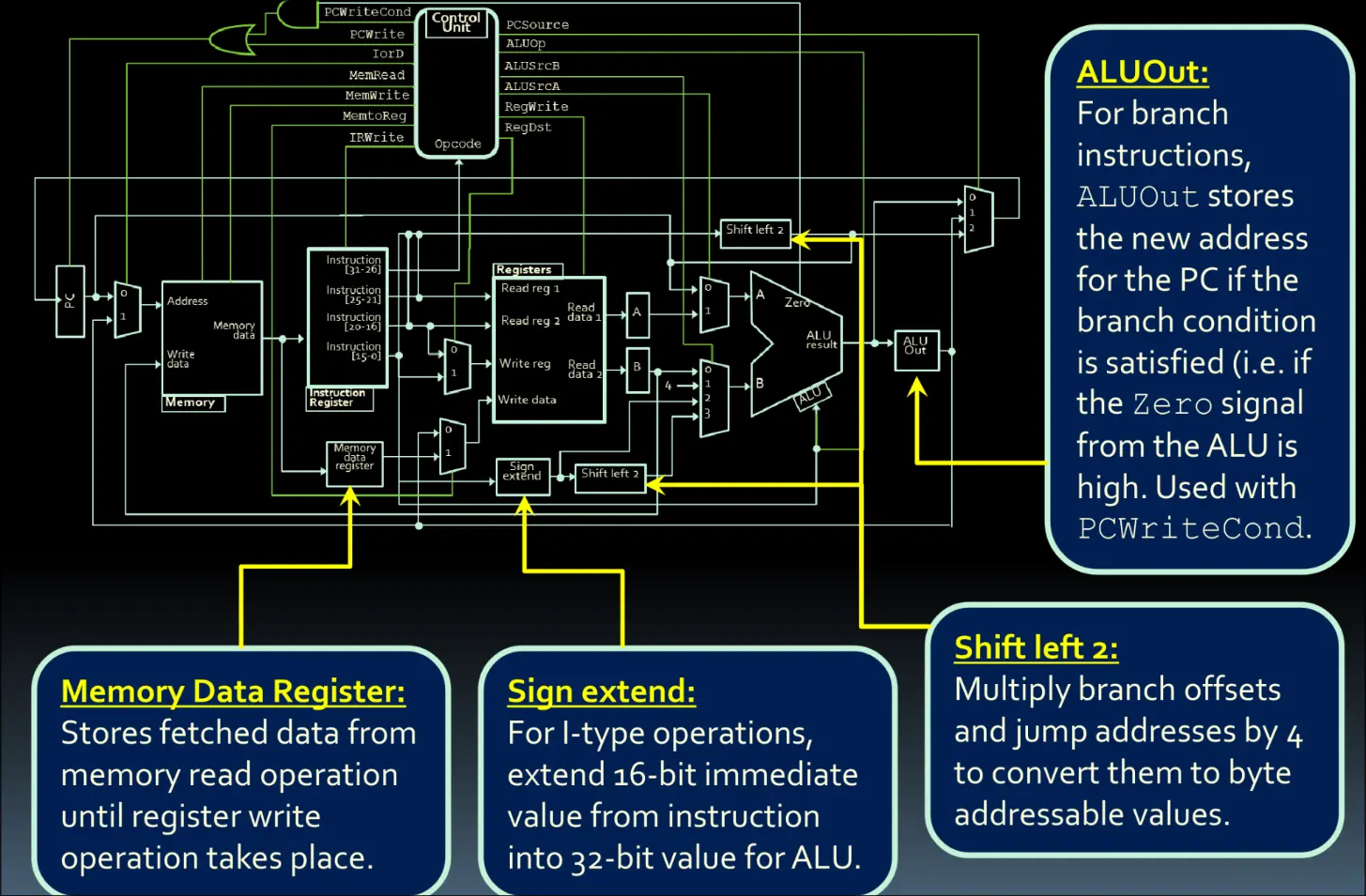 PCWriteCond: Holds the ALU output and writes only if ALU’s zero condition is true