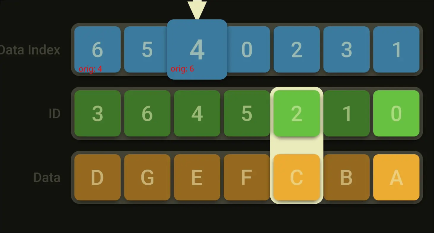 - Swap the two indexes in the data index vector