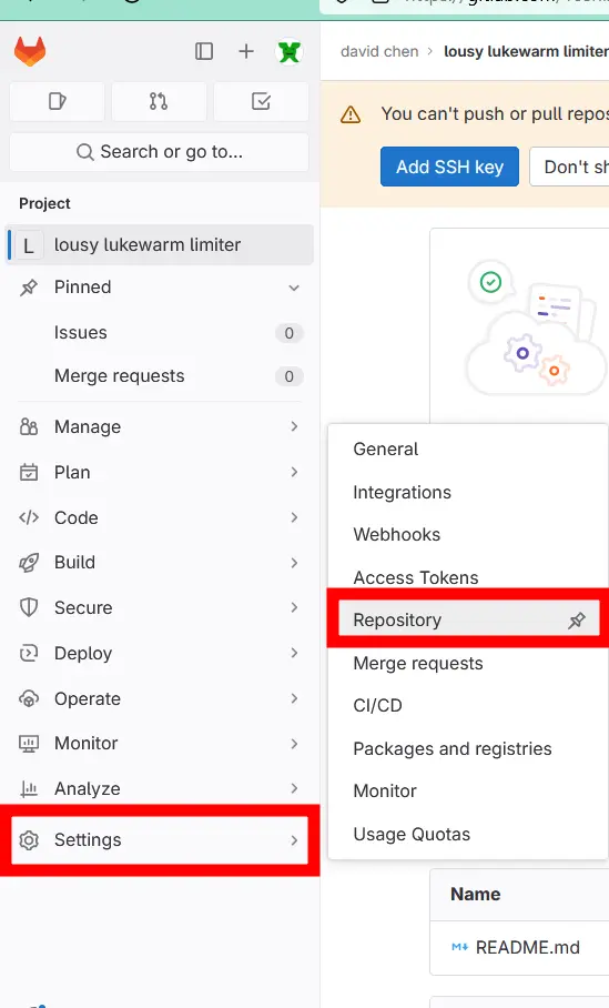 Go to settings > repository