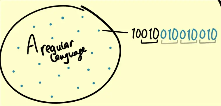 - String , comprised of and a subsequence in that can be repeated/pumped forever s.t