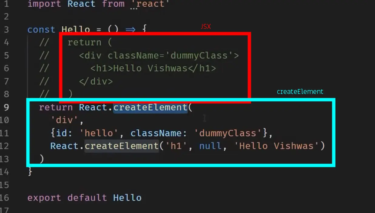 The older version of creating components. replaced by JSX The two ways of writing are equivalent, but JSX is much cleaner.
