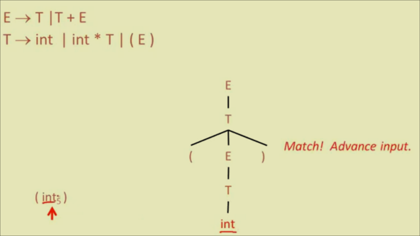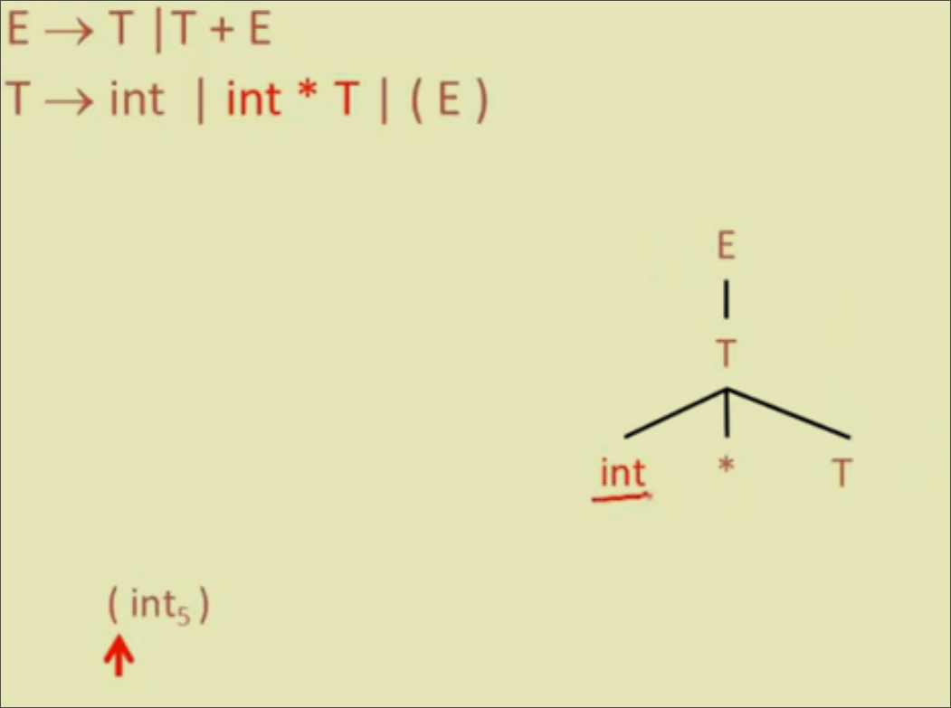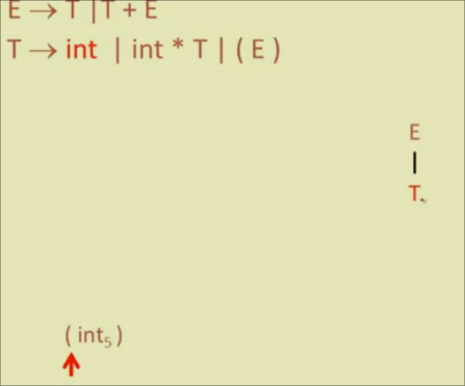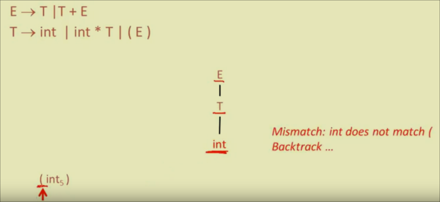 Step 4: Derive int * T from T. Wrong. Backtrack