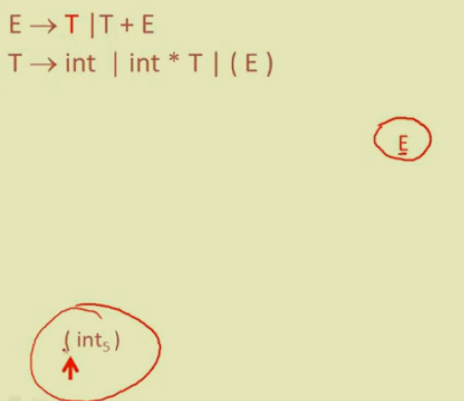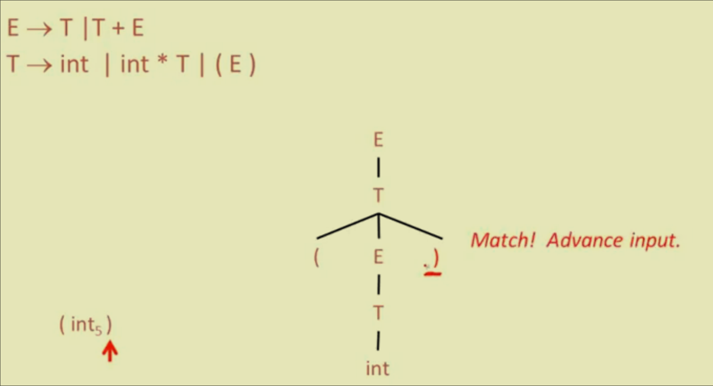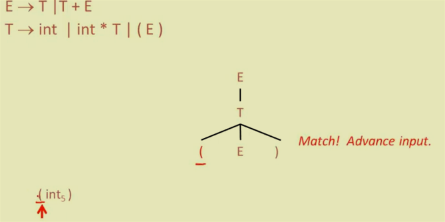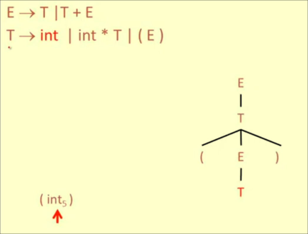 Step 4: Derive int * T from T. Wrong. Backtrack