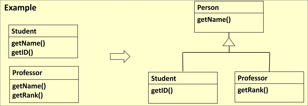 A form of Refactoring that creates a superclass for two classes that are similar in logic.