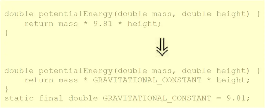A form of Refactoring that involves converting numbers into constants whenever possible.