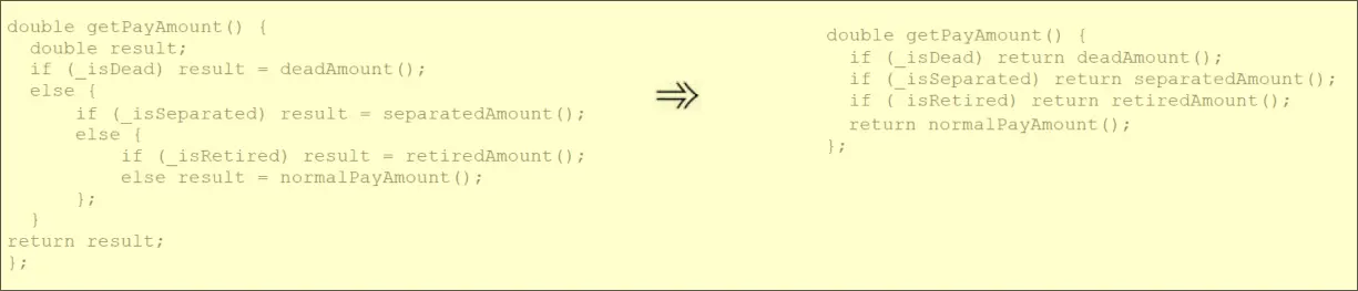 A form of Refactoring nested conditionals that return with single guard clauses instead.