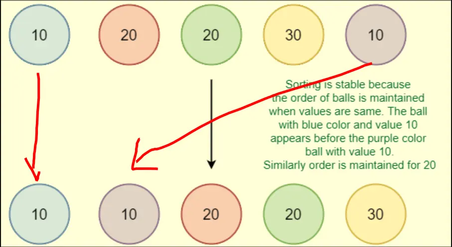 A sorting algorithm is stable if, the relative position of items is retained after sorting.