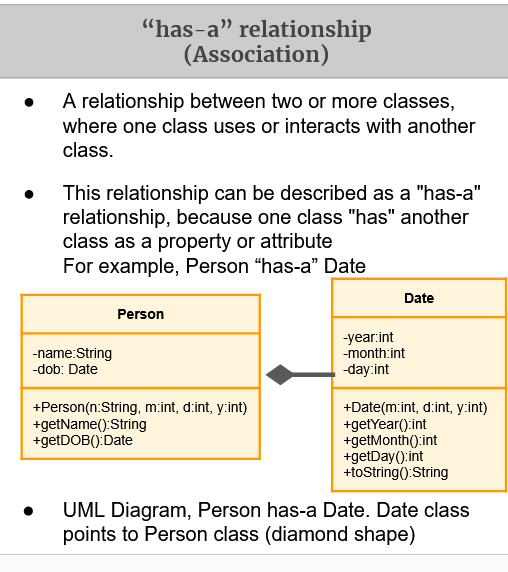 Is-a Means that this current class is Extends from another class Has-a Means that this current class includes another class. maybe as an attribute. Overrides