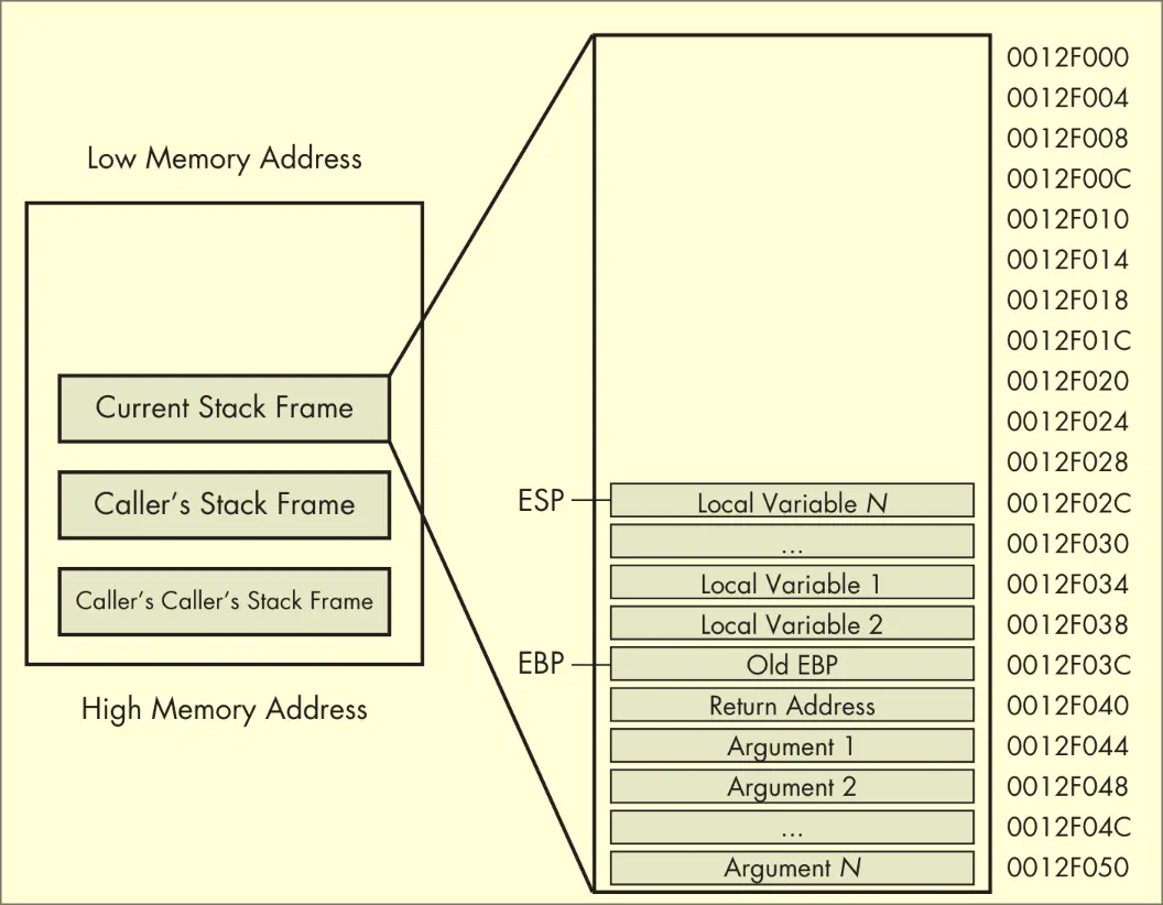 call <location>. This causesripto be pushed to the stack (return address) - Space is allocated onto the stack for local variables