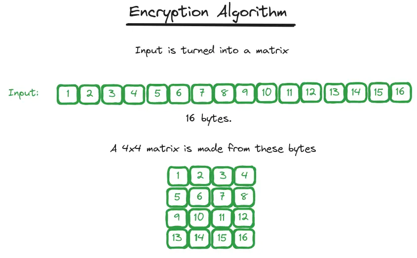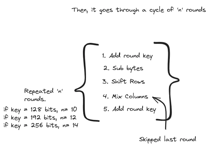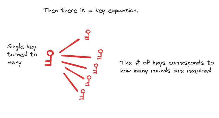 - The key is constructed out of 64 bits Takes a message and a key. The key can be 128bits, 192bits or 256bits.