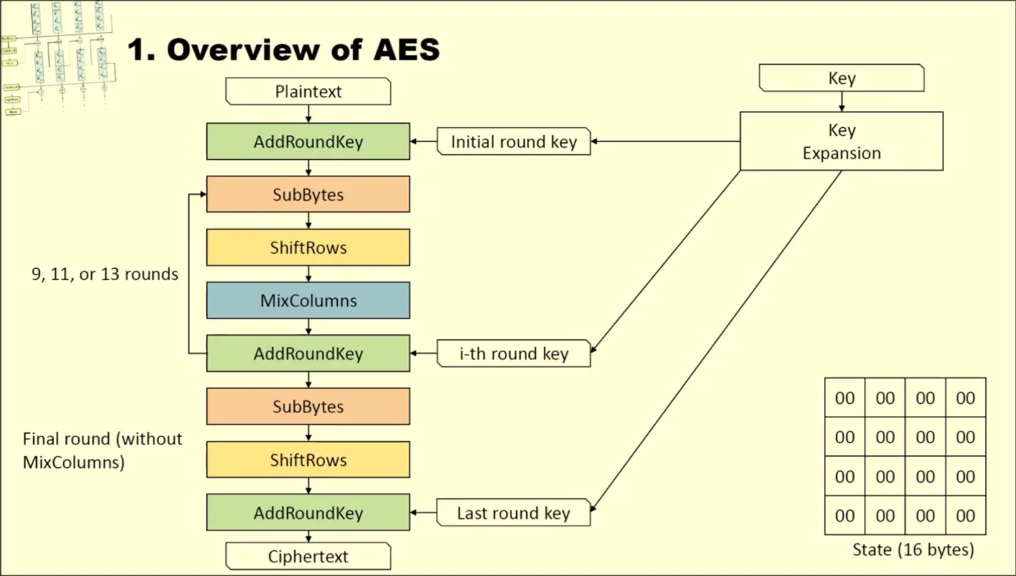 - Our input is split into 16-byte block, each block is converted into a Matrix