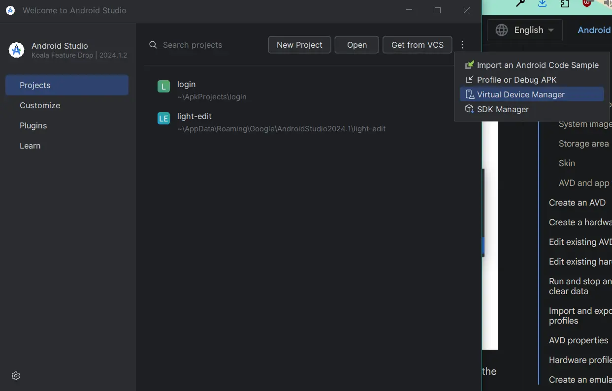 From home page > Virtual Device Manager