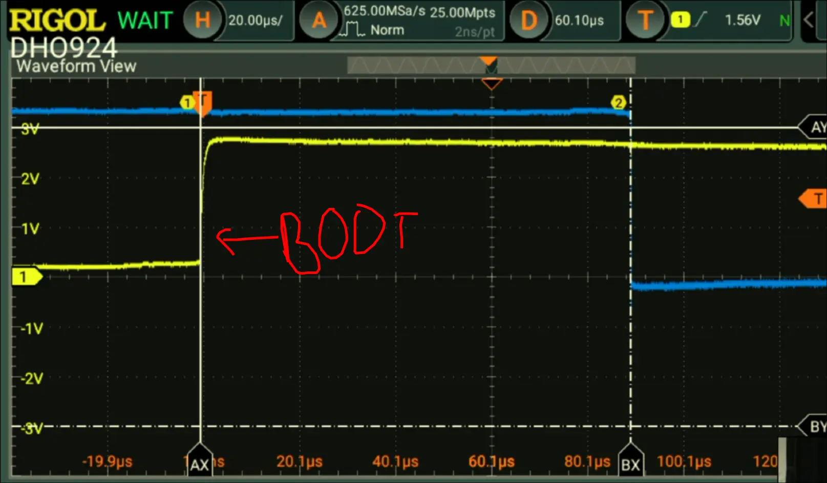This example shows that this low frequency is a signal that the Boot ROM is initializing itself.