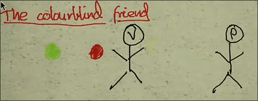 We attempt to prove to our colorblind friend that two balls are different colors.
