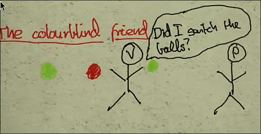 - Zero Knowledge : Your friend learns nothing except that the balls are different (they dont learn which ball was red, and which was green)
