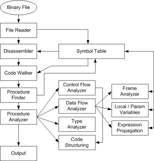 A tool that converts compiled binary Object File into source code Process File Reader Disassembler IR Lifting Decompiler Procedure Finder Decompiler Procedure Analyzer Decompiler Expression Structuring Resources https://www.backerstreet.com/decompiler/expression_propagation.php https://mahaloz.re/dec-history-pt1 https://decompilation.wiki/fundamentals/cfg-recovery/lifting/ https://www.program-transformation.org/Transform/HistoryOfDecompilation2.html