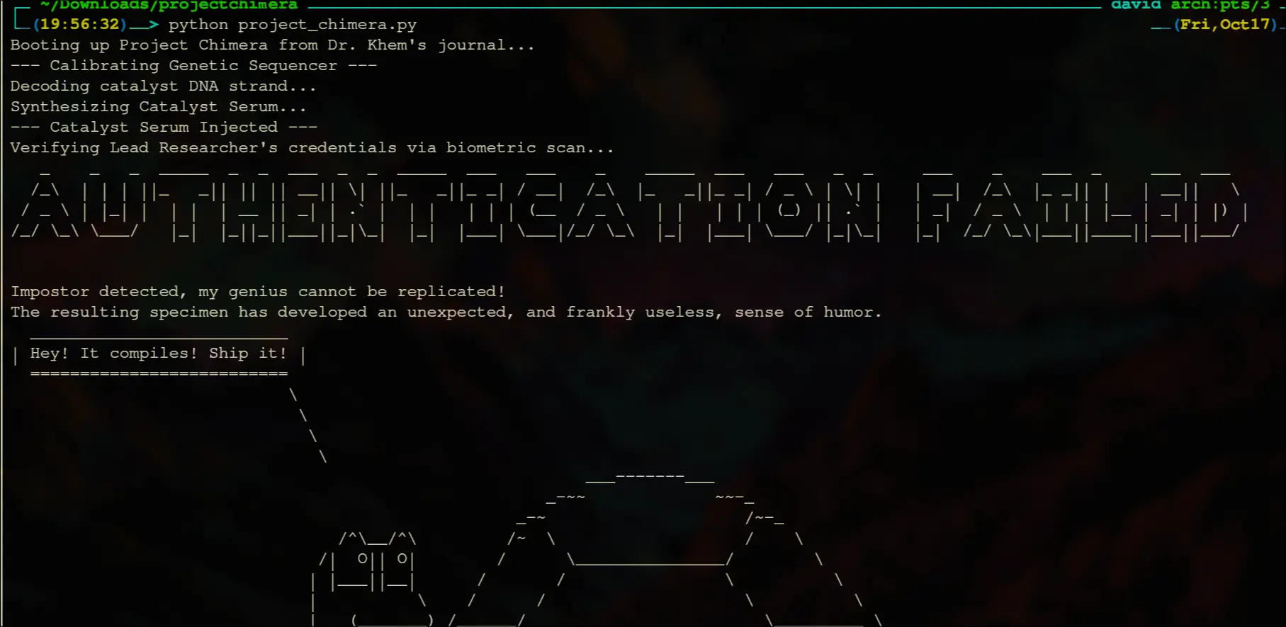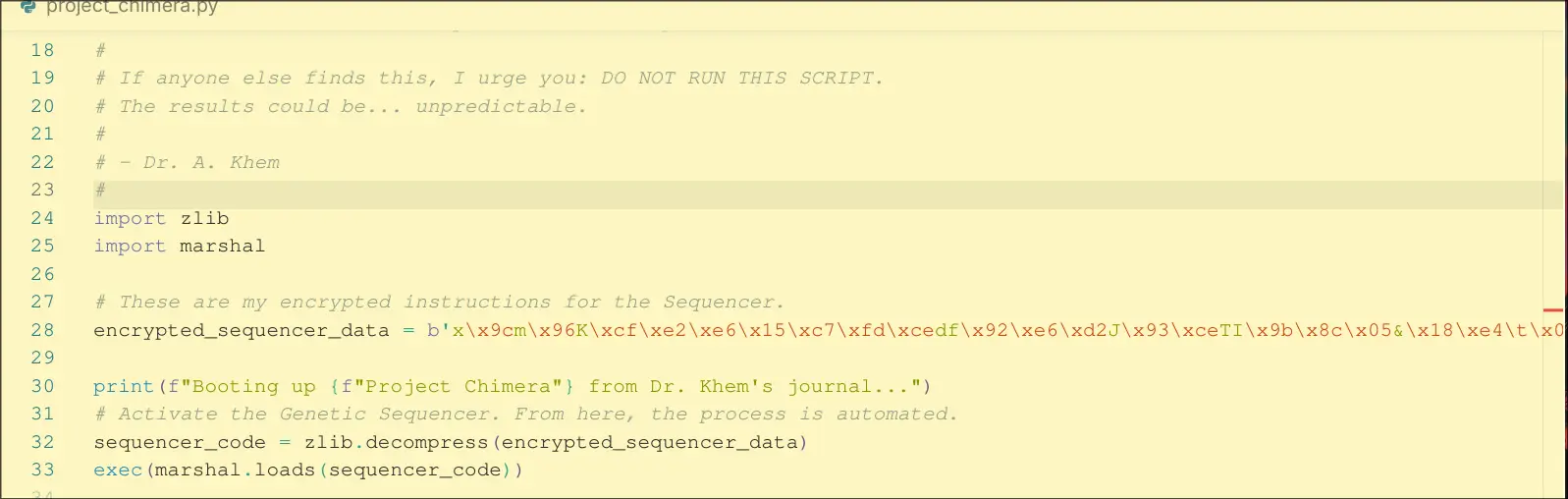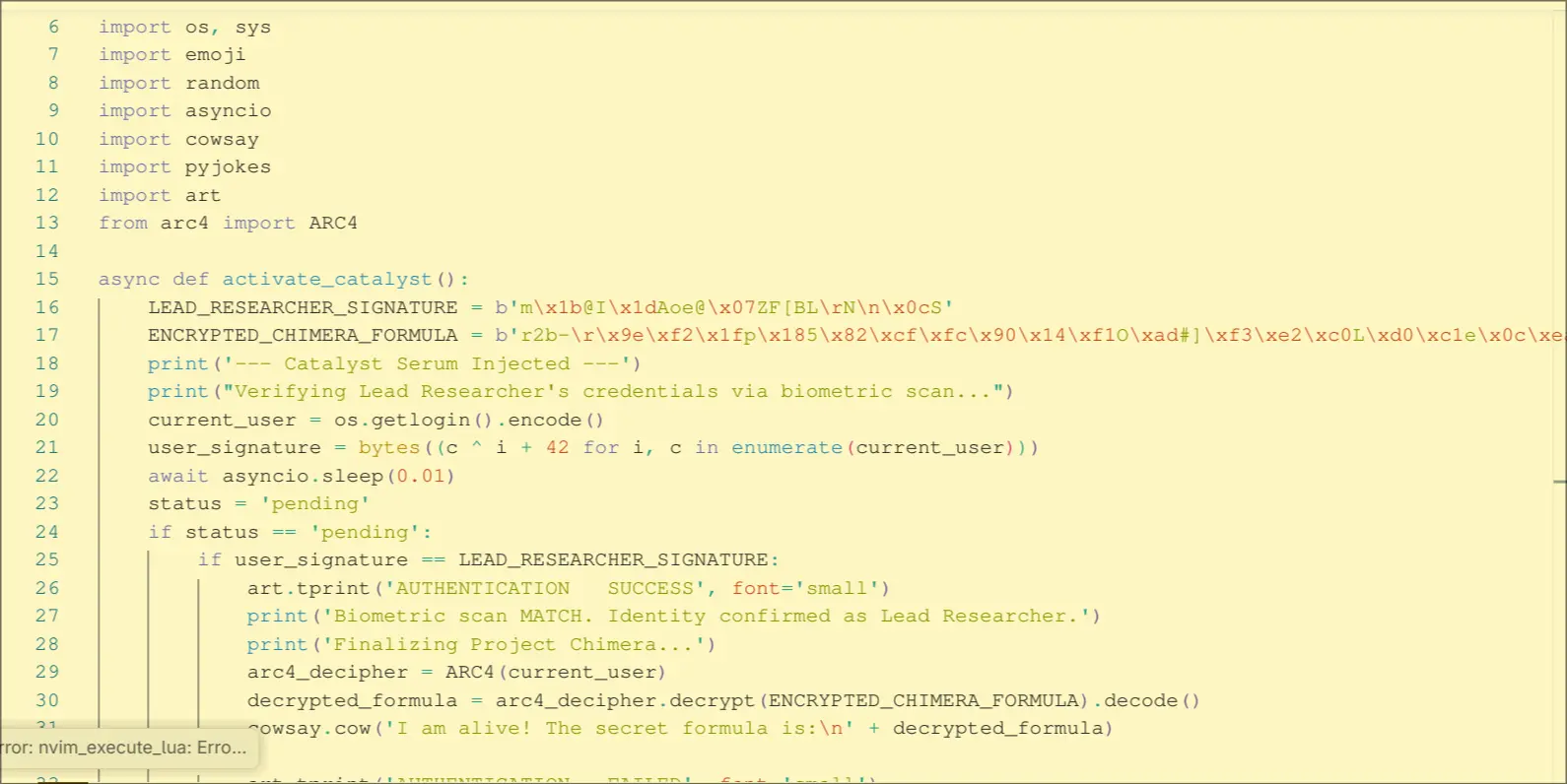 decrypted_formula = arc4_decipher.decrypt(ENCRYPTED_CHIMERA_FORMULA).decode()