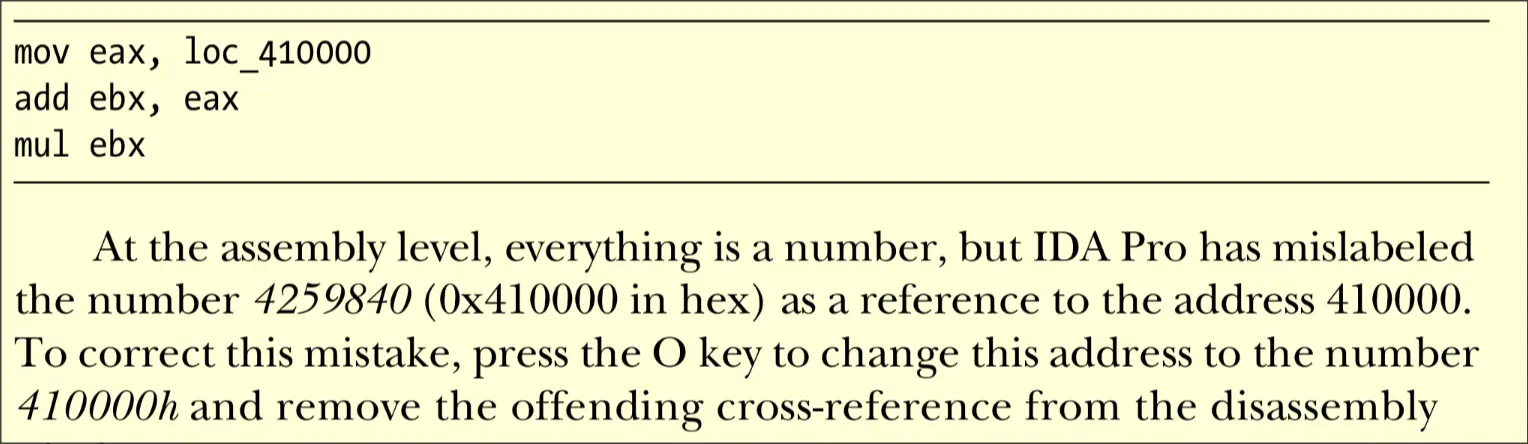 If IDA mislabels a reference to data, or data as a reference you can use O to change.