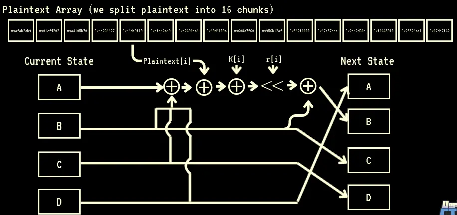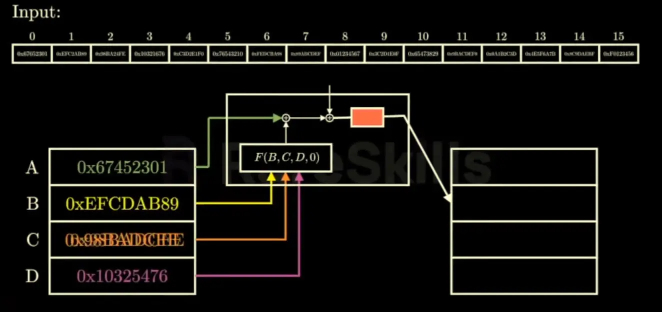 - Takes in 512-bit (64-byte) input (can be Padded)