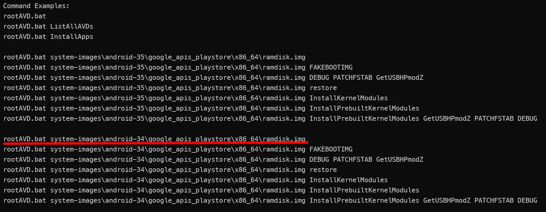 git clone https://github.com/newbit1/rootAVD.gitcd rootAVD./rootAVD.bat ListAllAVDsor./rootAVD.sh ListAllAVDsif its linux. See the android device you want to root