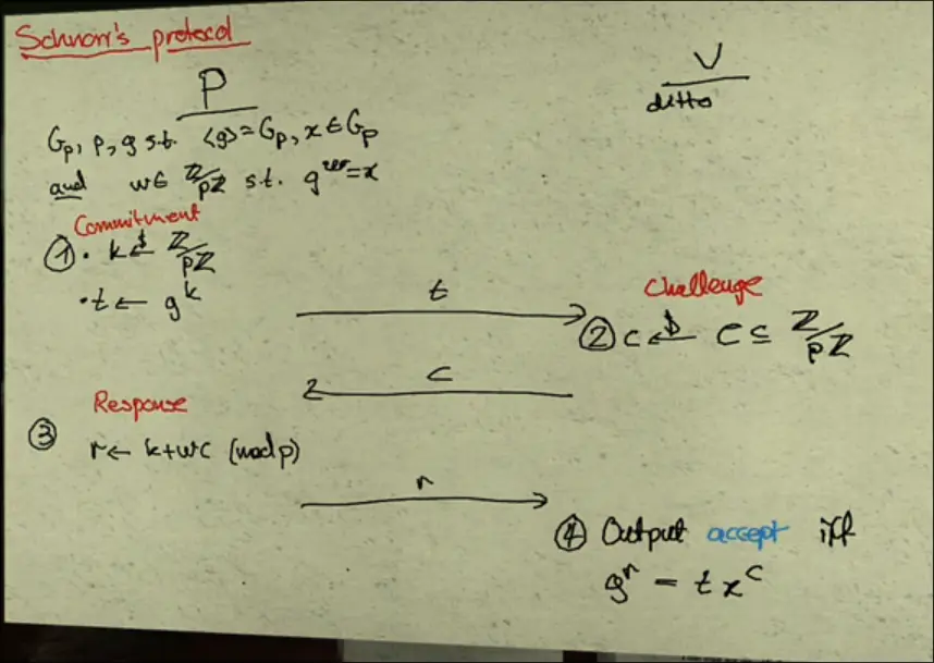 - picks challenge c \xleftarrow{\} C \subset \frac{\mathbb{Z}}{\mathbb{Z}_{p}}$