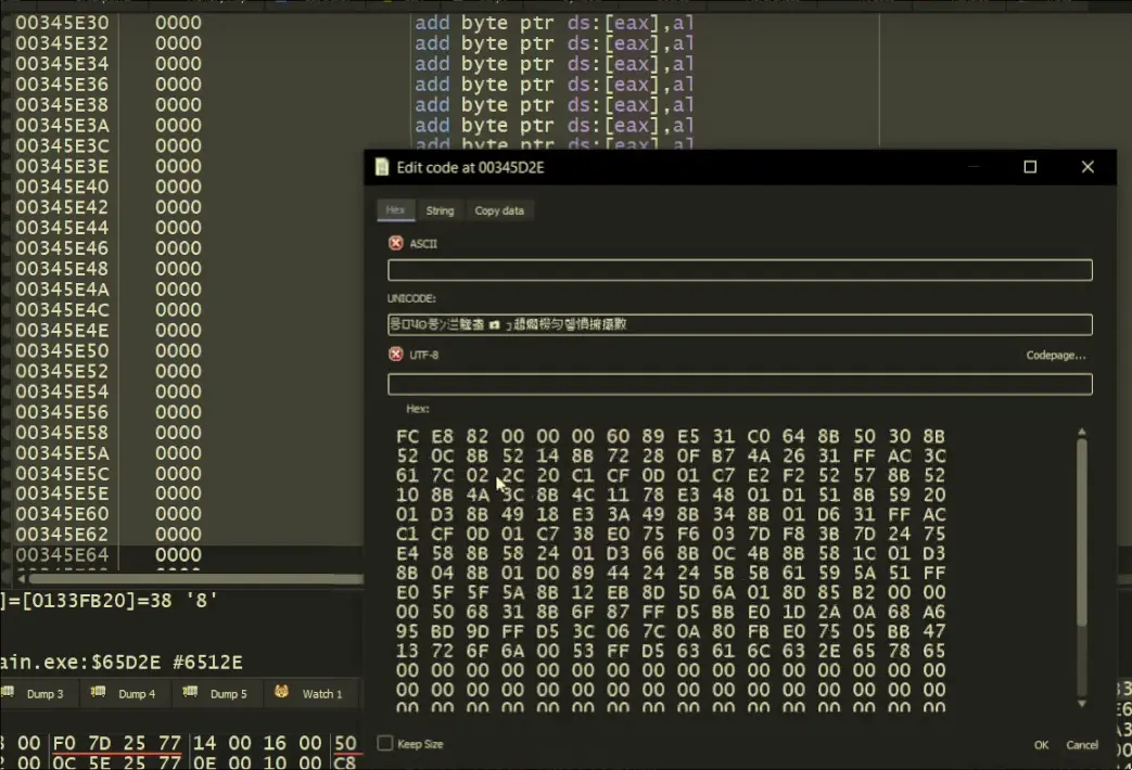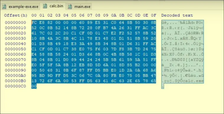 - Copy paste the hexidecimal data of your executable into the codecave