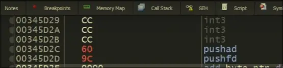 pushad and pushfd