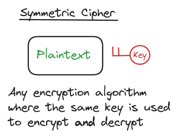 A encryption algorithm wherein the same key is used to encrypt and decrypt