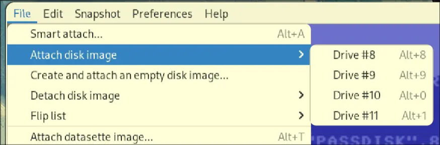 x64scto run the emulator- Load the disk into the drive (usually drive 8):