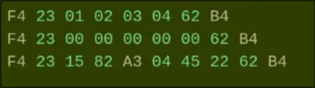 $hex_string = { F4 23 [4-6] 62 B4 }Will match any of these: