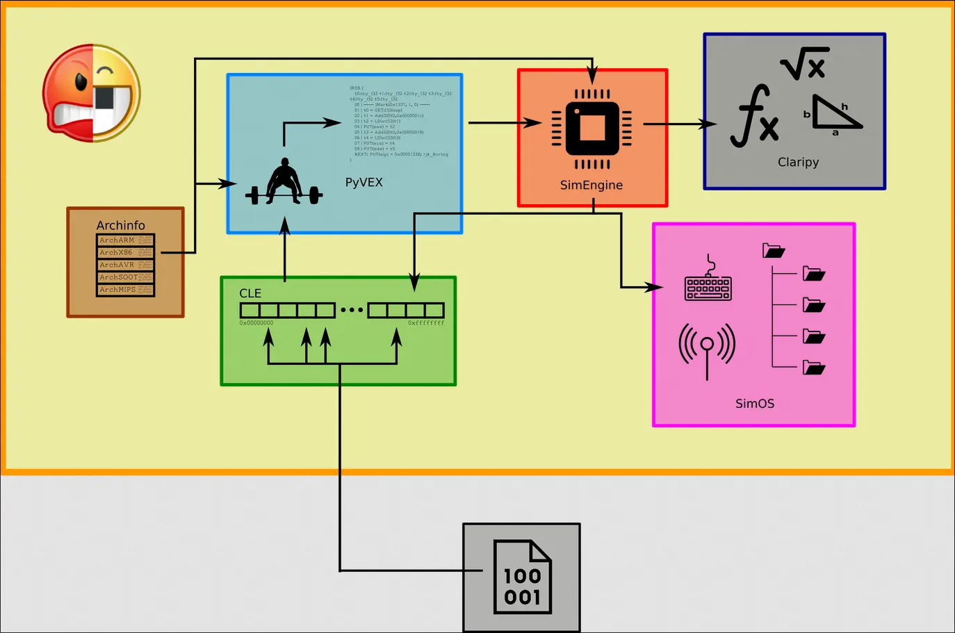 - archinfo provides information to SimEngine and SimOS about the architecture the binary is running on