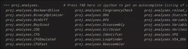 A list of tools bundled with angr to assist in binary analysis. Full list of tools