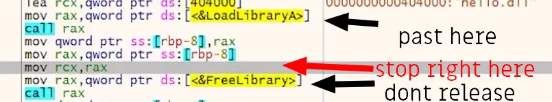 Step past the point where the DLL is loaded in, keep stepping before the DLL is released. Locate the .dll in the Memory map You can use Scylla to dump the DLL