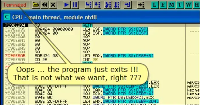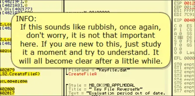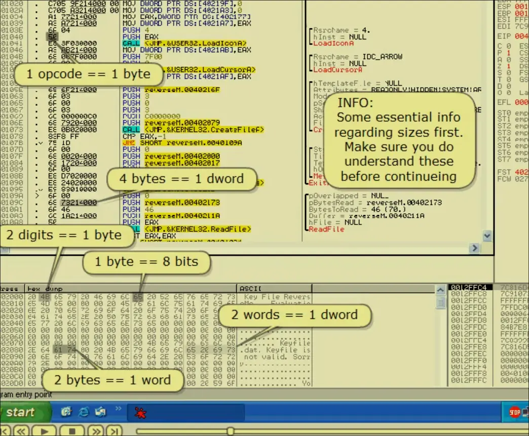 Lena introduces the theoretical aspects before letting you use OllyDBG practically