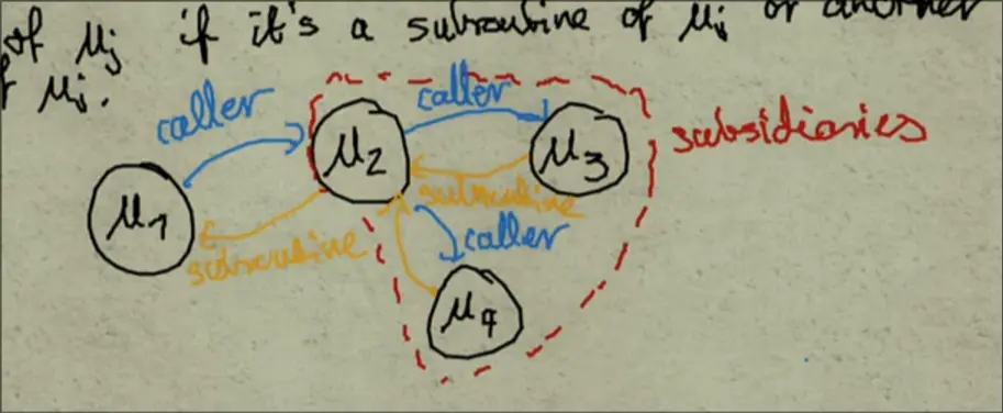 Definition For set of machines μ1,…,μn where μi=(IDi,ci,μi) μi is a caller of μj if (IDj,subroutine-output)∈cj