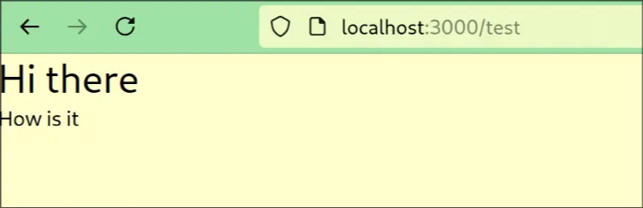 How is itNow, run and navigate to localhost:3000/test and you should see: