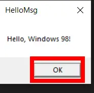 MessageBox (NULL, TEXT ("Hello, Windows 98!"), TEXT ("Somewindowname"), 0) ;
