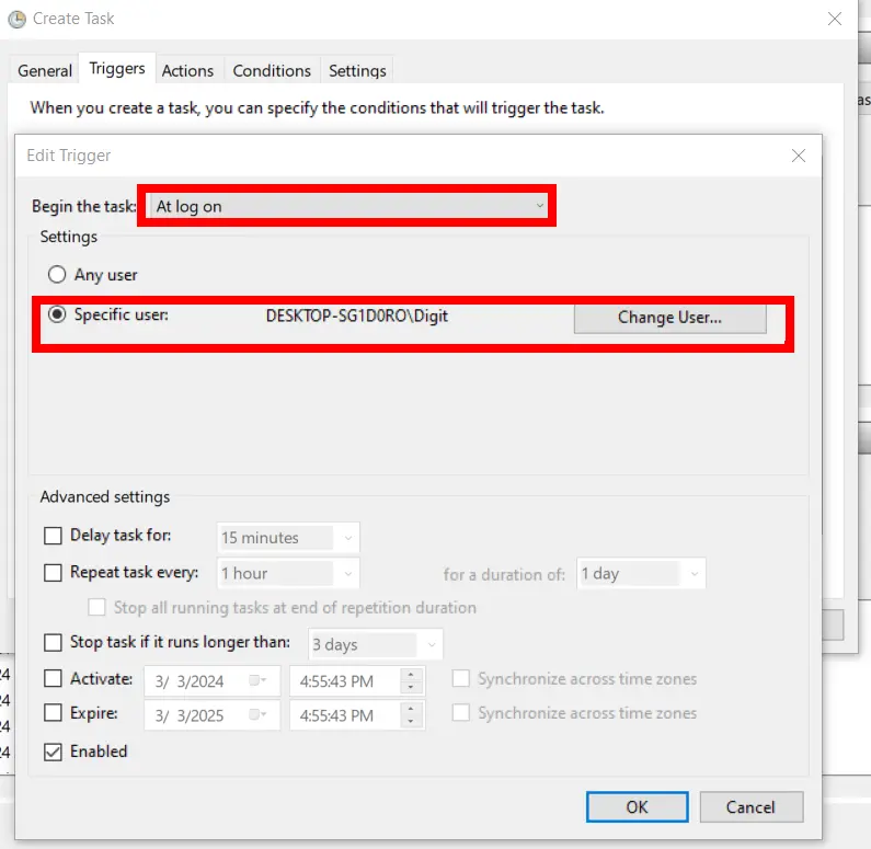 3. Allow the task to be ran automatically when user logs in